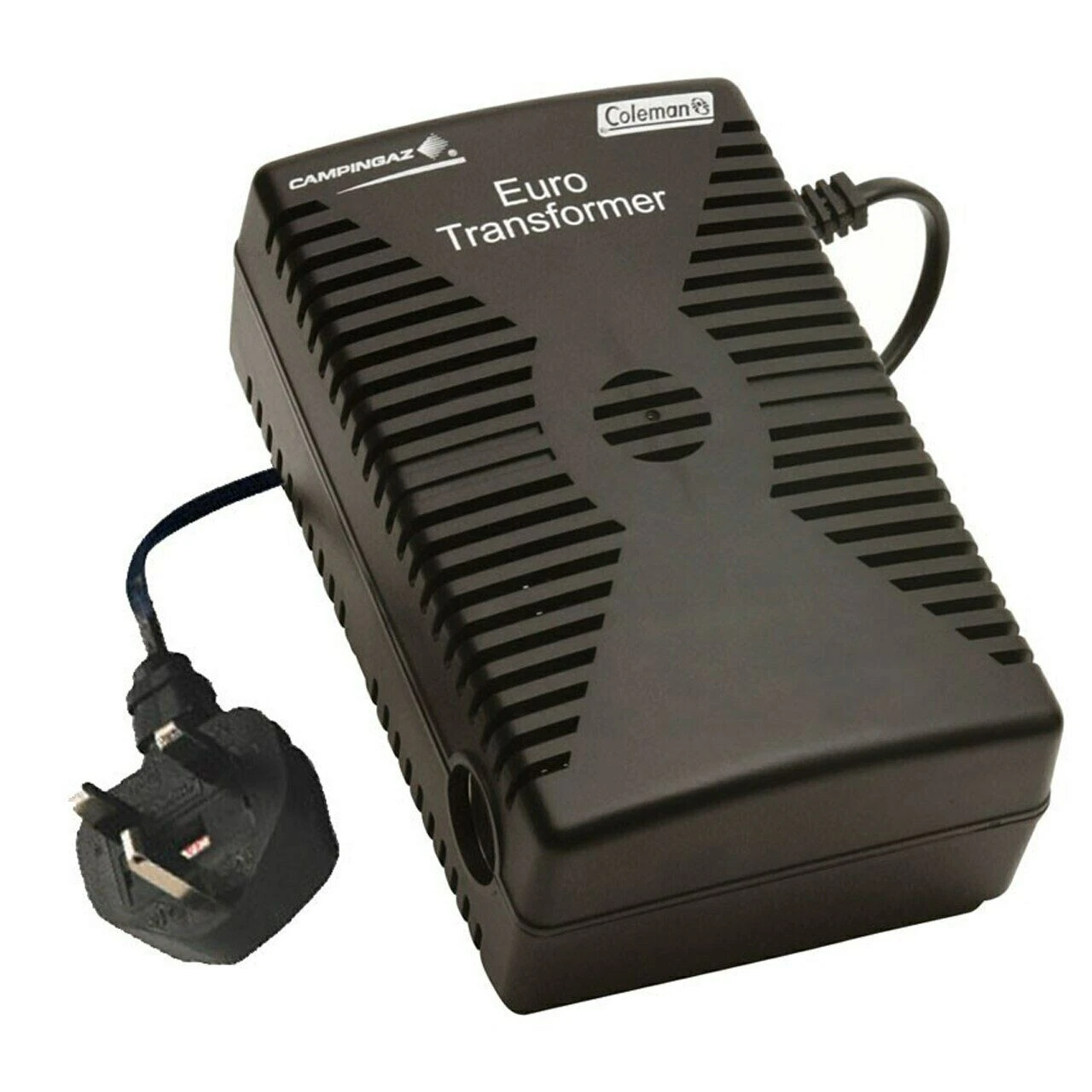 Power transformer for use with Campingaz, Coleman and all other brands of 12 volt thermoelectric cool-boxes allowing it to be powered from UK mains power. Use to pre-cool at home before setting off, increasing the effectiveness of your power cooler.