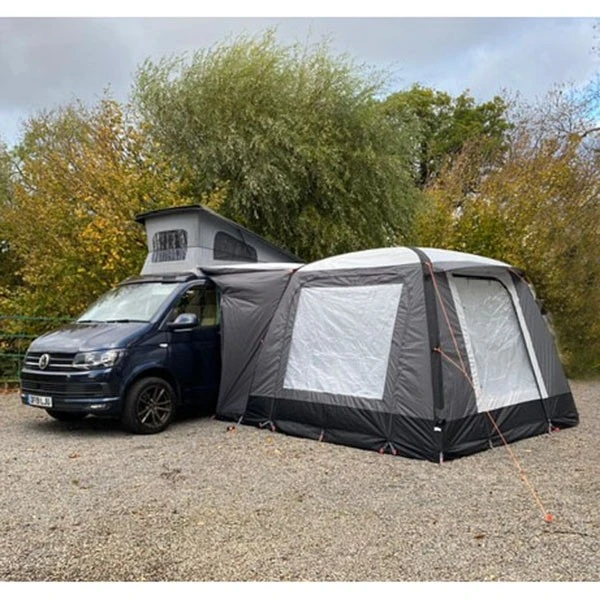 The Camptech Moto Kingston air is an easy to pitch driveaway inflatable awning designed for a VW type vehicle – fitting height 180-210cm