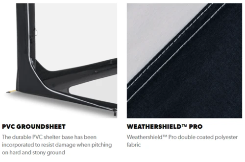The durable PVC shelter base has been incorporated to resist damage when pitching on hard and stony ground