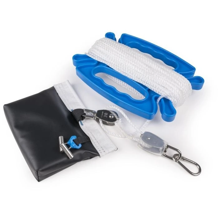 Simply slide the pulley into place, lock into the caravan beading channel, and attach the carabiner to the eyelet on the awning beading.