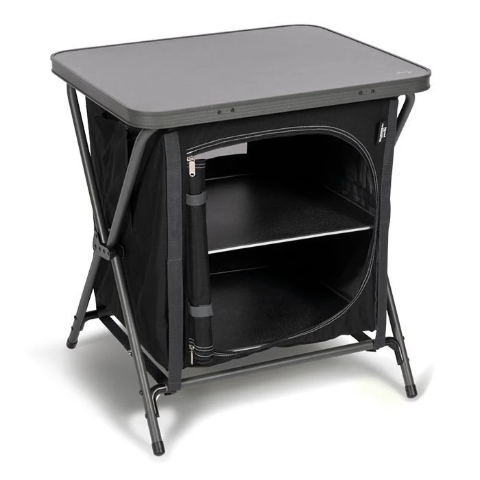 The Kampa Dometic Tilly is a compact, easy to assemble cupboard with two internal shelves.