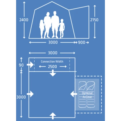 Utilizing the convenience of the innovative Kampa Air Frame, Cross AIR’s steep walls provide a spacious living area.