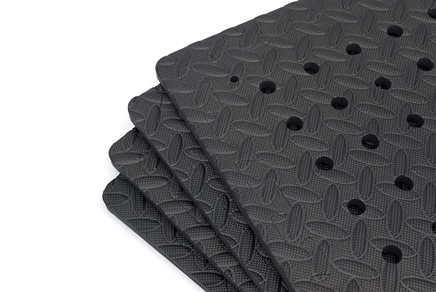 - VARIED APPLICATION: The functional floor pads are comprehensive in their applications. Not only that they make a great pick for garage flooring but also works well as caravan and awning flooring, tents, day care, play areas, basement and swimming pools.