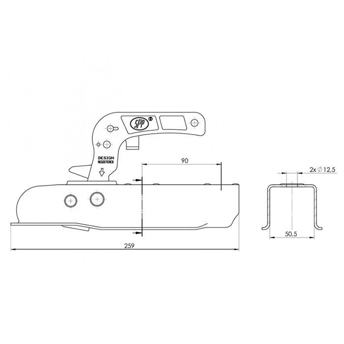 • Application unbraked trailers, 750kg max