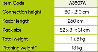 The awning has additional features such as full mesh doors, roll down, half or full blinds, roll up front panels, sun canopy front (if used with the optional universal canopy pole kit). All this plus a very small pack size, light weight and amazing value makes the Falcon an excellent awning for the weekend, first timers, the budget conscious and just about anyone after an easy to use lightweight porch awning.