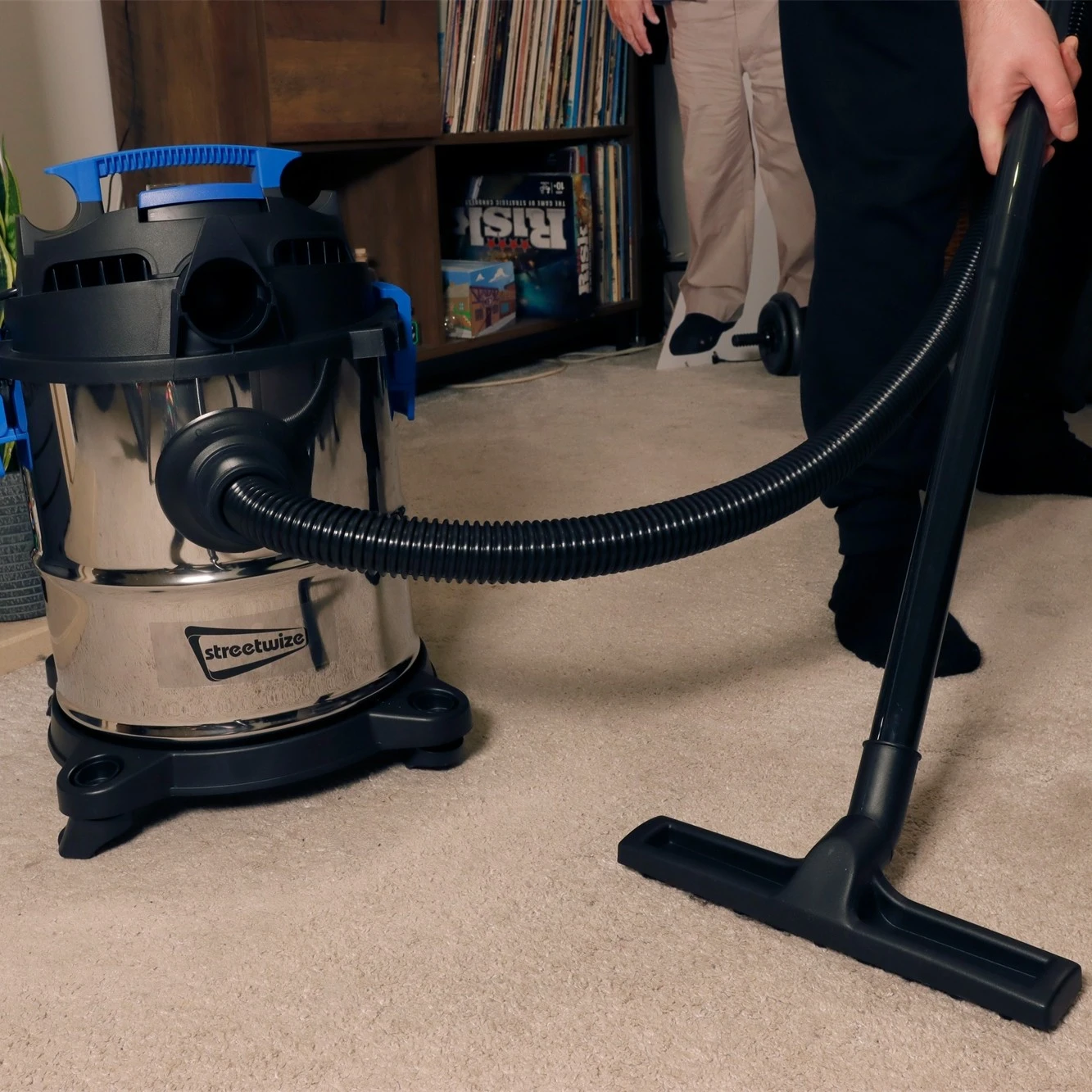 This 1200W vacuum cleaner from Streetwize is designed for both dry and wet vacuuming. It also features a blower functionality for funnelling dirt, dust and even leaves.